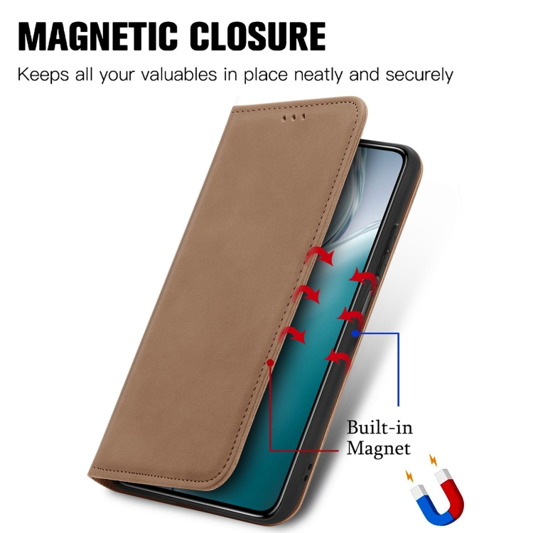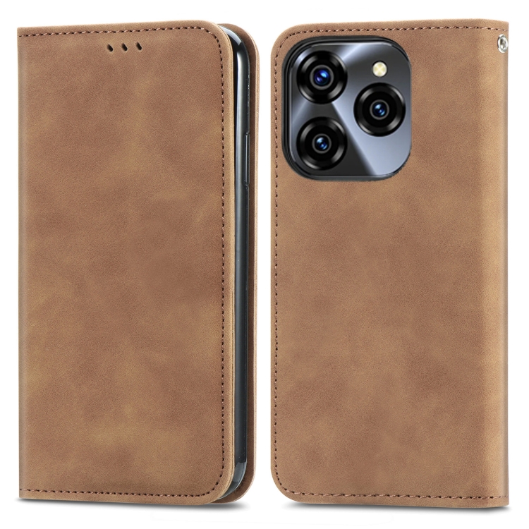 Funda de Cuero con Tapa Magnética y Tacto Retro para Oukitel C50 (Marrón)