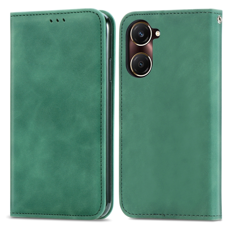 Funda de Cuero con Tapa Magnética y Tacto Retro para Vivo Y37 (Verde)