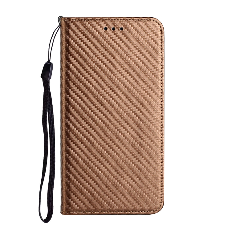 Funda de Cuero con Tapa Magnética y Textura de Fibra de Carbono para iPhone 16 Plus (Marrón)