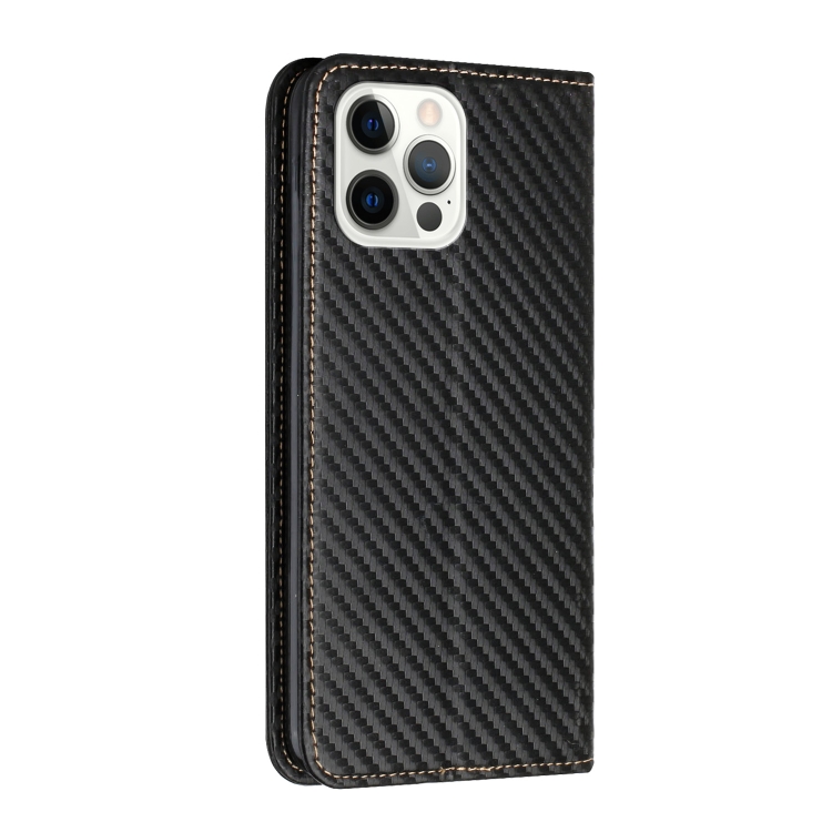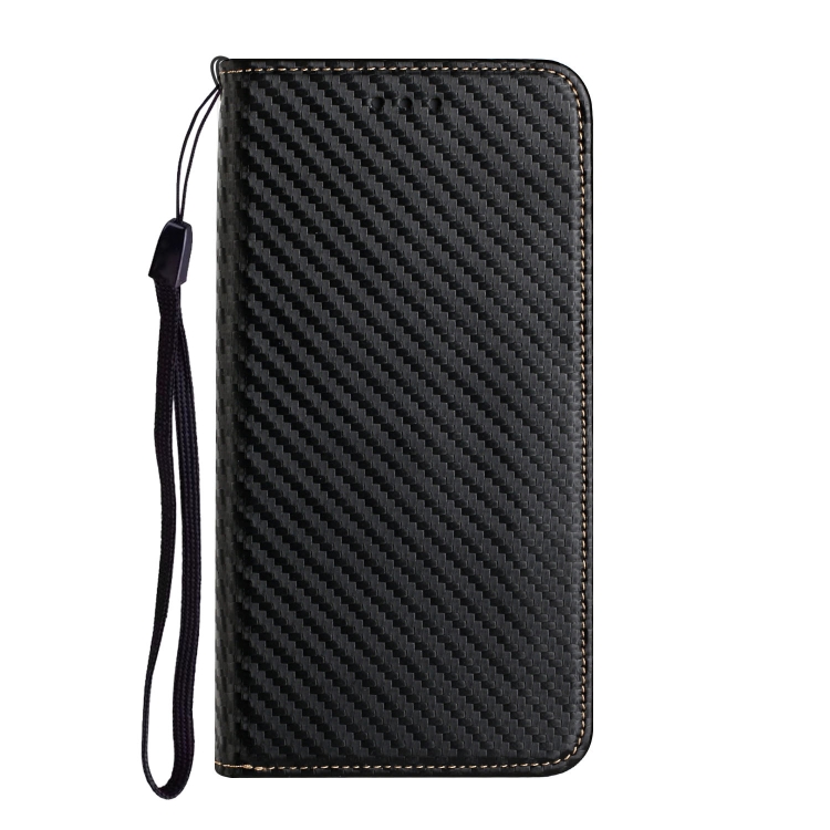 Funda de Cuero con Tapa Magnética y Textura de Fibra de Carbono para iPhone 16 Pro (Negro)