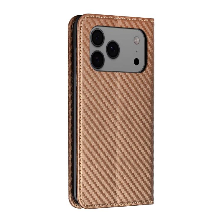 Funda de cuero con tapa magnética y textura de fibra de carbono para iPhone 17 Pro Max (marrón)