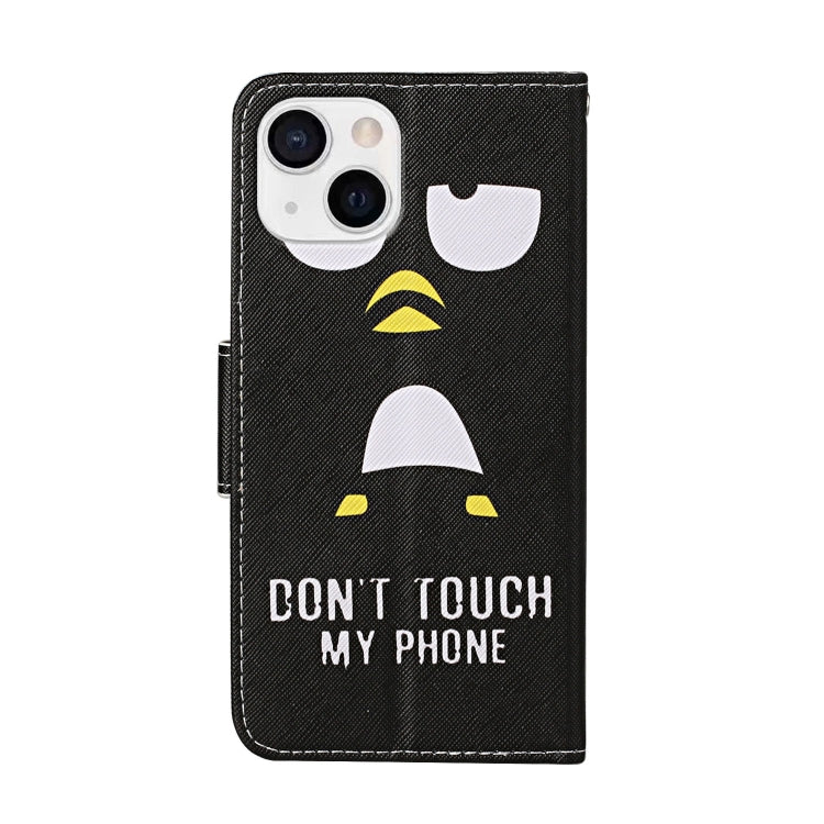 Funda de Cuero con Tapa para iPhone 13 Mini con Patrón Dibujo a Color (Pingüino)