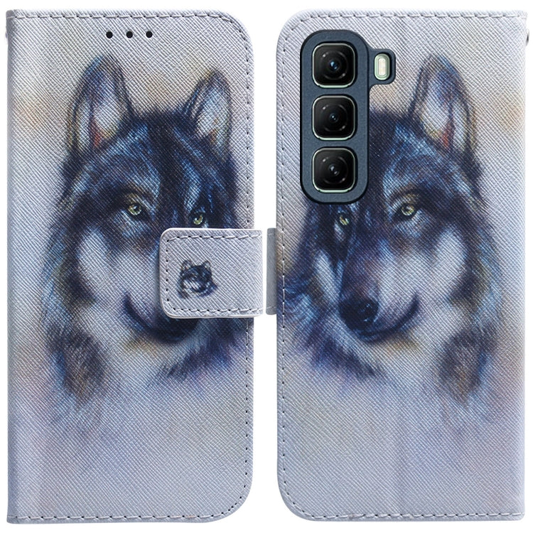 Funda de Cuero con Tapa para Infinix Hot 50 5G con Dibujo Colorido (Lobo Blanco)