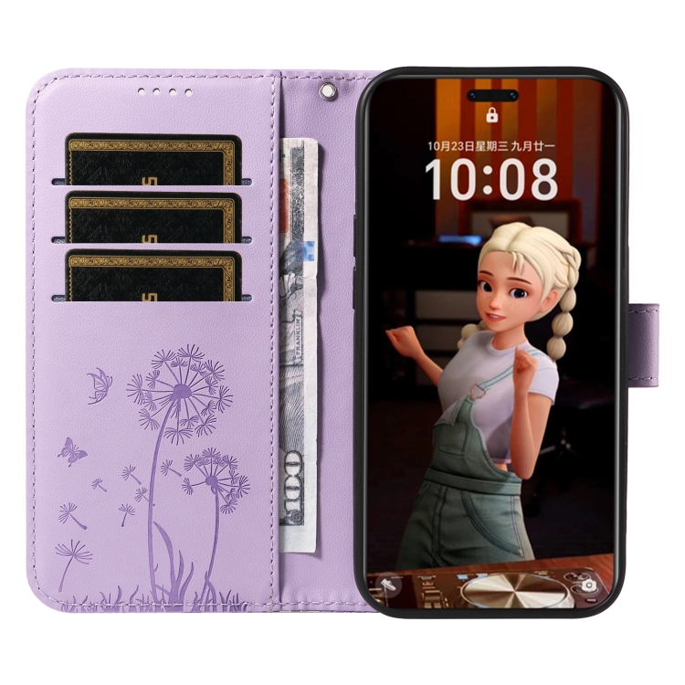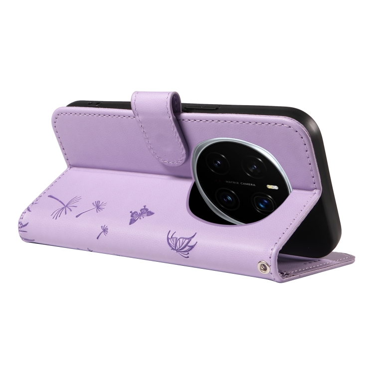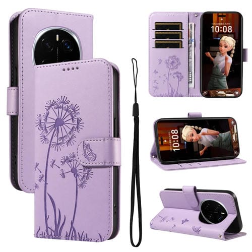 Funda de Cuero con Tapa y Estampado Diente de León para Honor Magic7 Pro (Morado)
