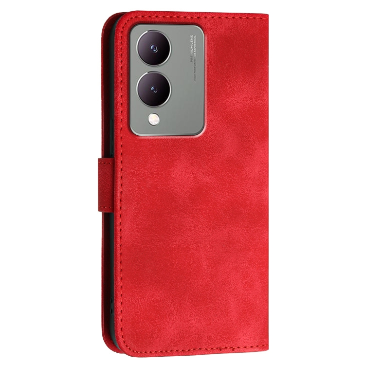 Funda de Cuero con Tapa para Teléfono con Diseño de Mariposa En Relieve y Cuadrícula Yx0080 para Vivo Y28 5G India con Cordón (Rojo)