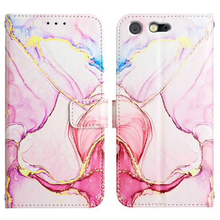 Funda de Cuero con Tapa para Teléfono Fujitsu Arrows Be F-05J/Sv F-03H/M03/M04 Tone M17 con Patrón Mármol (Oro Rosa)