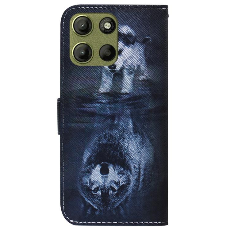 Funda de Cuero con Tapa para Motorola Moto G15 con Dibujo Lobo y Perro