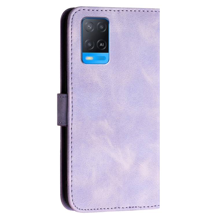 Funda de Cuero con Tapa para Teléfono Oppo A54 5G/A74 5G Yx0080 con Diseño de Mariposa En Relieve y Cuadrícula y Cordón (Morado Claro)