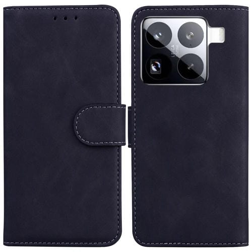 Funda De Cuero Con Tapa De Color Puro Y Tacto Suave Para Xiaomi 15 Pro (Negro)