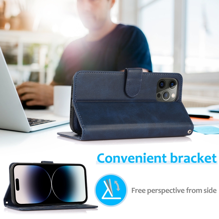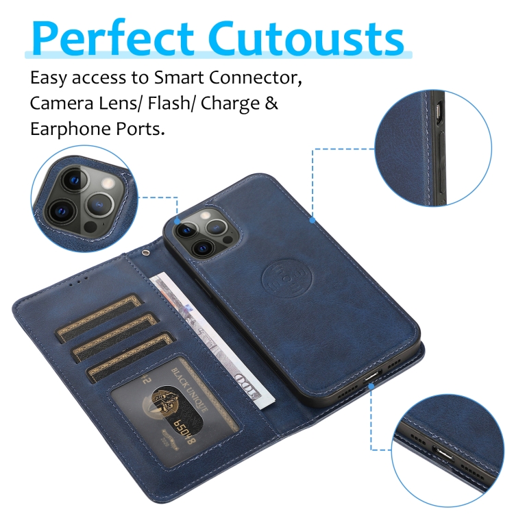 Funda de Cuero con Tapa Trasera Magnética Desmontable 2 En 1 para iPhone 16 Pro Max (Azul)