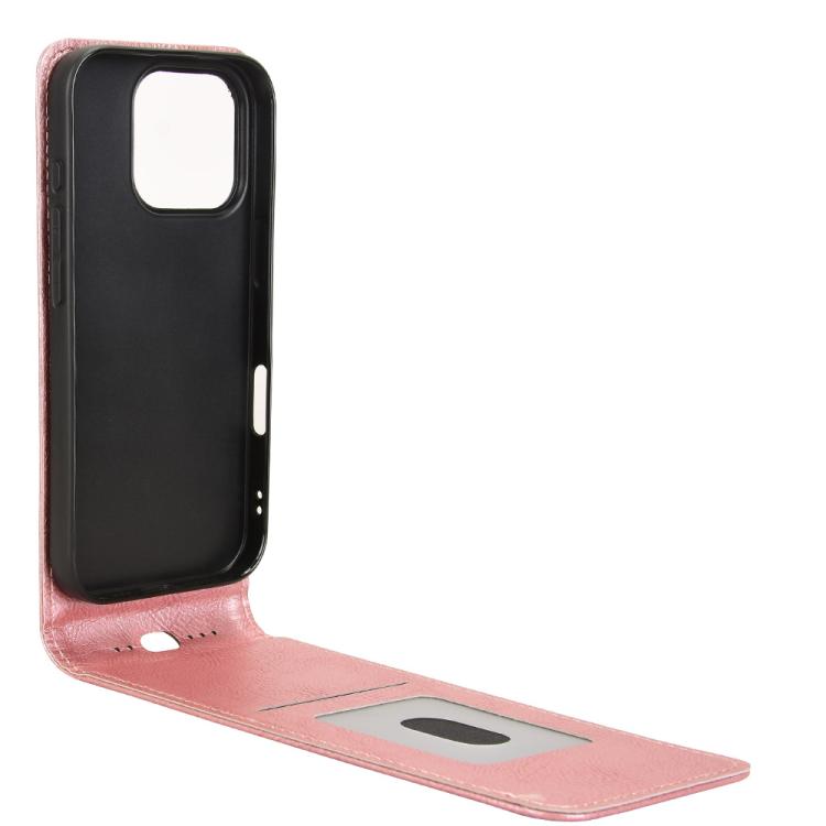 Funda de Cuero con Tapa Vertical Magnética para iPhone 16 Pro Max (Oro Rosa)