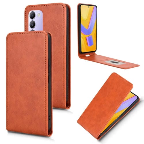 Funda de Cuero con Tapa Vertical Magnética para Teléfono Vivo V40 Se 5G/Y100 5G Idn (Marrón)
