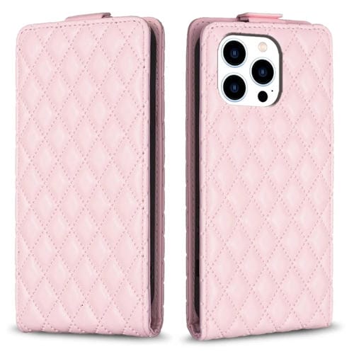 Funda de Cuero con Tapa Vertical para iPhone 13 Pro Max Diamond Lattice (Rosa)