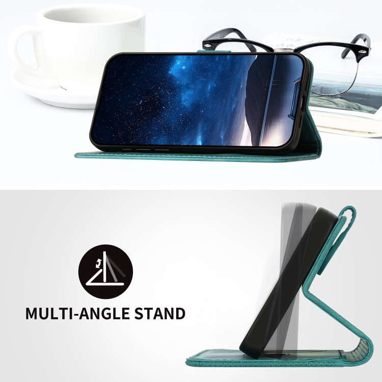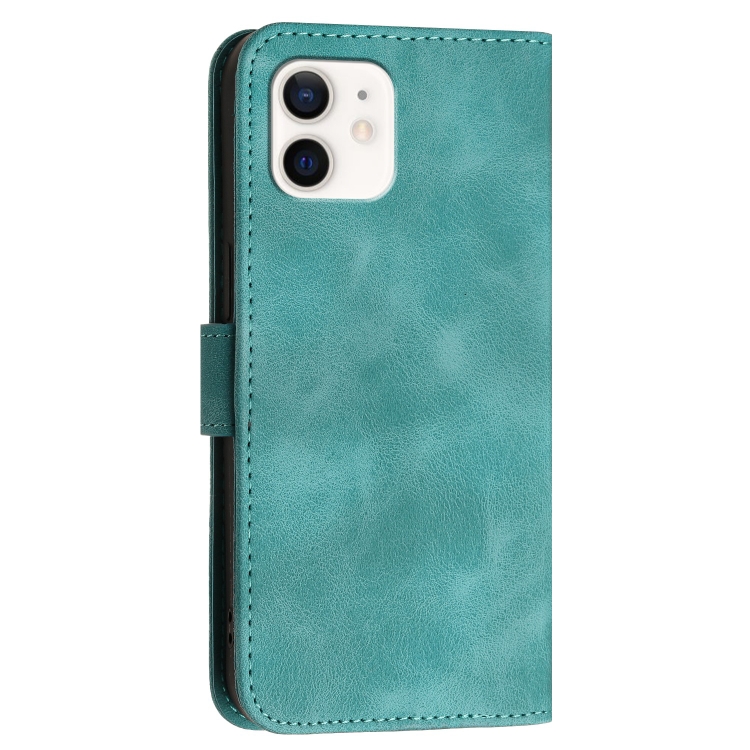 Funda de Cuero con Tapa y Cordón para iPhone 11 Yx0080 con Diseño En Relieve de Mariposa y Cuadrícula (Azul Claro)