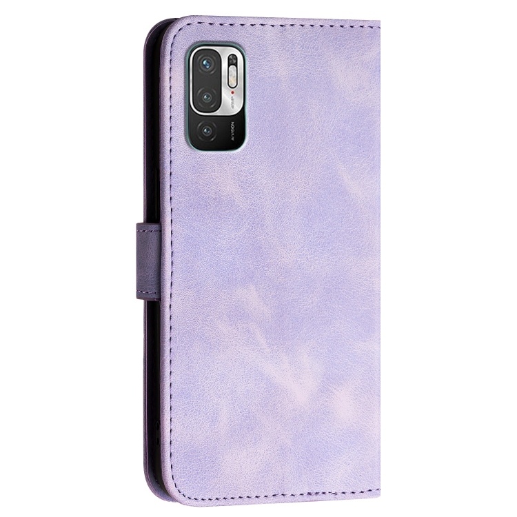 Funda de Cuero con Tapa y Cordón para Redmi 10 Yx0080 con Diseño En Relieve de Mariposa y Cuadrícula (Morado Claro)