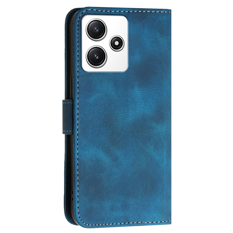 Funda de Cuero con Tapa y Cordón para Redmi 12 5G Yx0080 con Diseño de Mariposa En Relieve y Cuadrícula (Azul Oscuro)