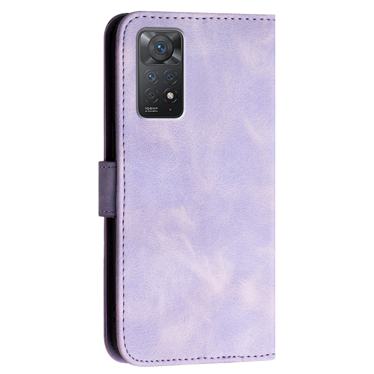Funda de Cuero con Tapa y Cordón para Redmi Note 11 Pro 4G Global Yx0080 con Diseño En Relieve de Mariposa y Cuadrícula (Morado Claro)