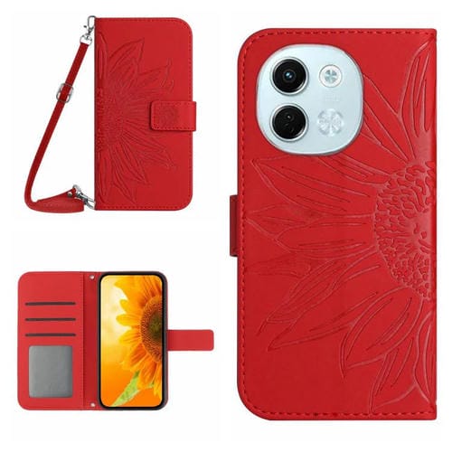 Funda de Cuero con Tapa y Cordón para Tecno Spark 30 5G con Diseño de Girasol (Rojo)