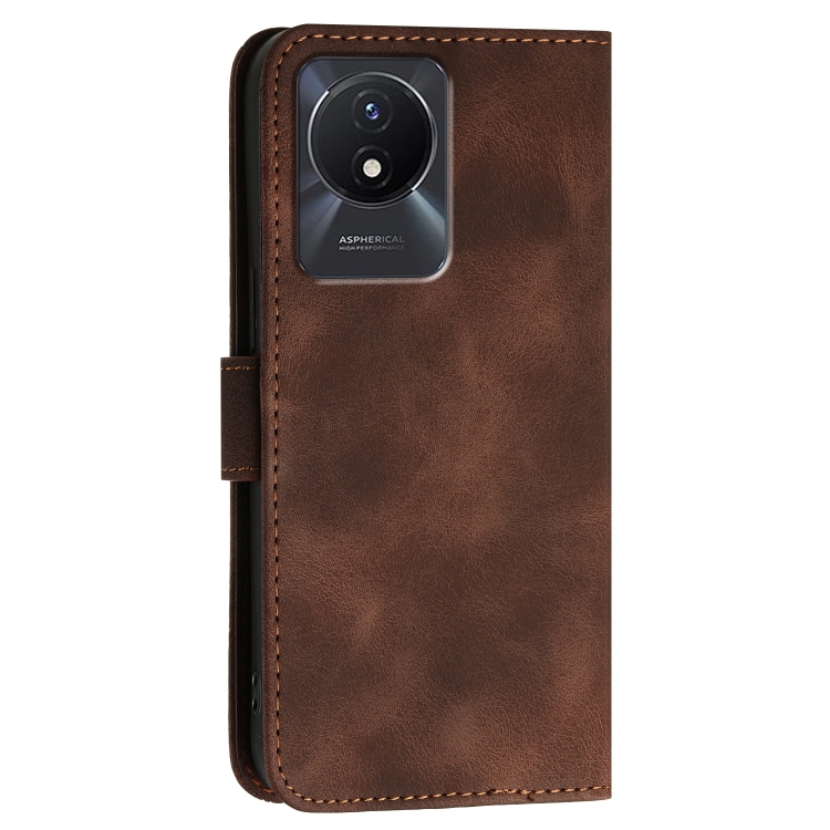 Funda de Cuero con Tapa y Cordón para Vivo Y02A 4G / Y02 4G Yx0080 con Diseño En Relieve de Mariposa y Cuadrícula (Café)