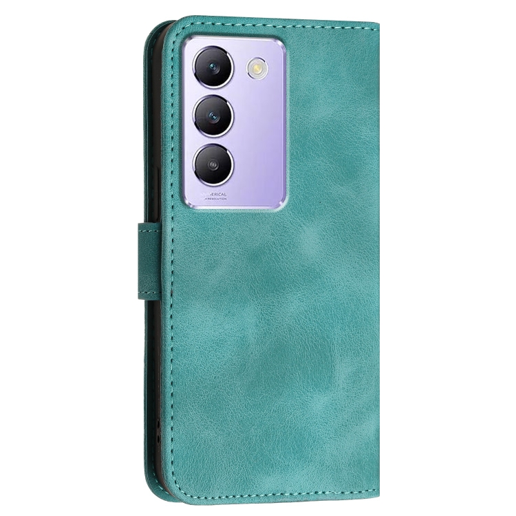 Funda de Cuero con Tapa y Cordón para Vivo Y100 5G Idn Yx0080 con Diseño En Relieve de Mariposa y Cuadrícula (Azul Claro)