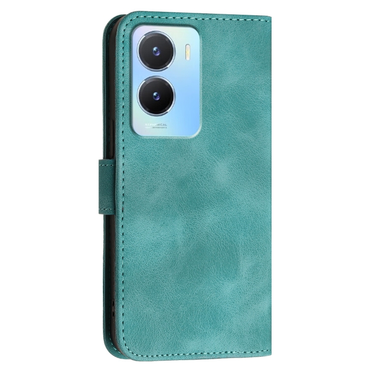 Funda de Cuero con Tapa y Cordón para Vivo Y16 4G Global Yx0080 con Diseño En Relieve de Mariposa y Cuadrícula (Azul Claro)