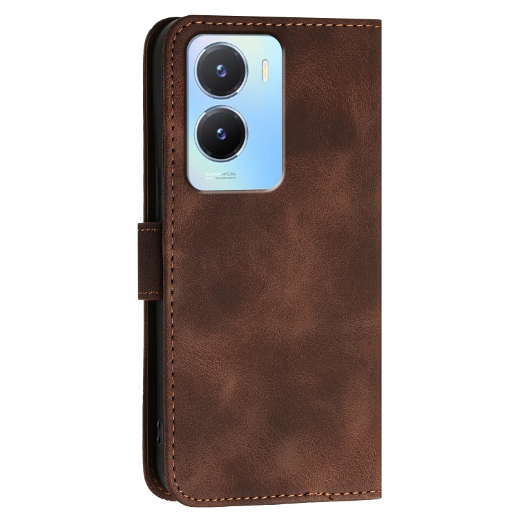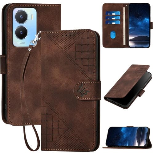 Funda de Cuero con Tapa y Cordón para Vivo Y16 4G Global Yx0080 con Diseño En Relieve de Mariposa y Cuadrícula (Café)