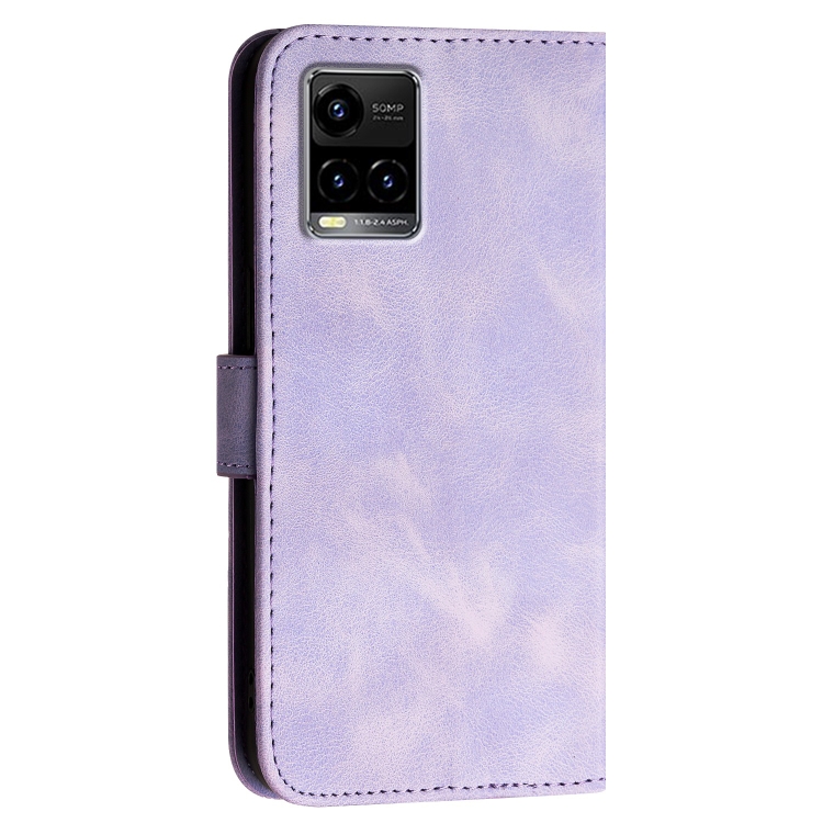 Funda de Cuero con Tapa y Cordón para Vivo Y21S/Y21T Yx0080 con Diseño En Relieve de Mariposa y Cuadrícula (Morado Claro)
