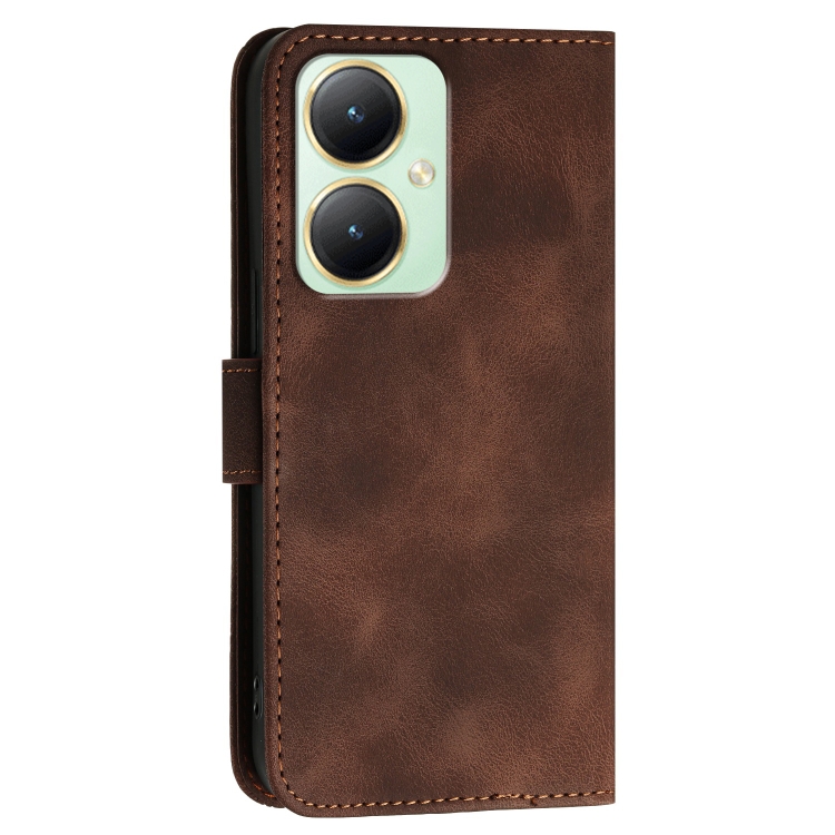 Funda de Cuero con Tapa y Cordón para Vivo Y27 4G Global Yx0080 con Diseño En Relieve de Mariposa y Cuadrícula (Café)