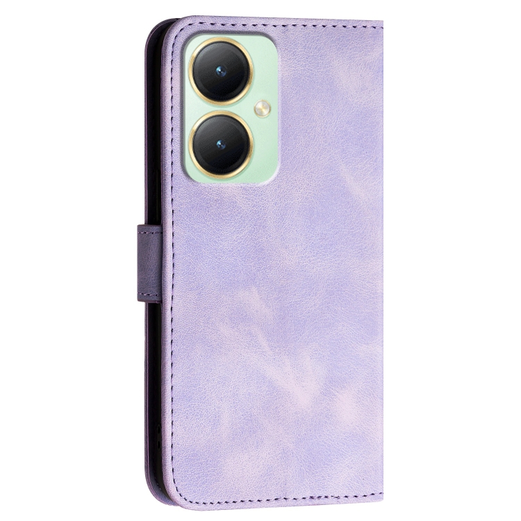 Funda de Cuero con Tapa y Cordón para Vivo Y27 4G Global Yx0080 con Diseño En Relieve de Mariposa y Cuadrícula (Morado Claro)