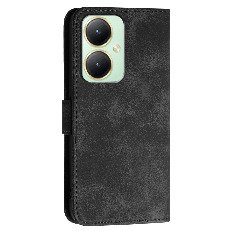 Funda de Cuero con Tapa y Cordón para Vivo Y27 4G Global Yx0080 con Diseño En Relieve de Mariposa y Cuadrícula (Negro)