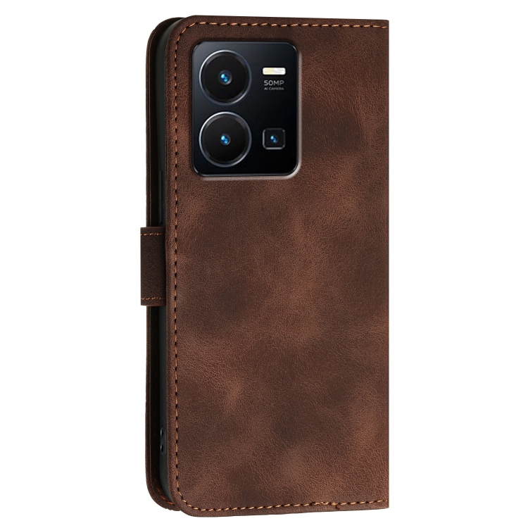 Funda de Cuero con Tapa y Cordón para Vivo Y77 5G Global Yx0080 con Diseño En Relieve de Mariposa y Cuadrícula (Café)