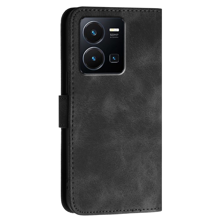 Funda de Cuero con Tapa y Cordón para Vivo Y77 5G Global Yx0080 con Diseño En Relieve de Mariposa y Cuadrícula (Negro)