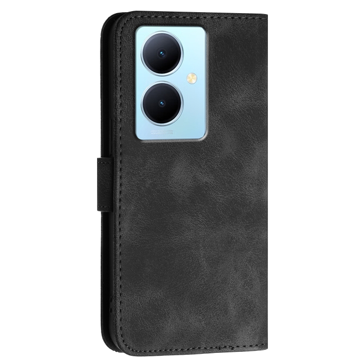 Funda de Cuero con Tapa y Cordón para Vivo Y78 5G Global Yx0080 con Diseño En Relieve de Mariposa y Cuadrícula (Negro)