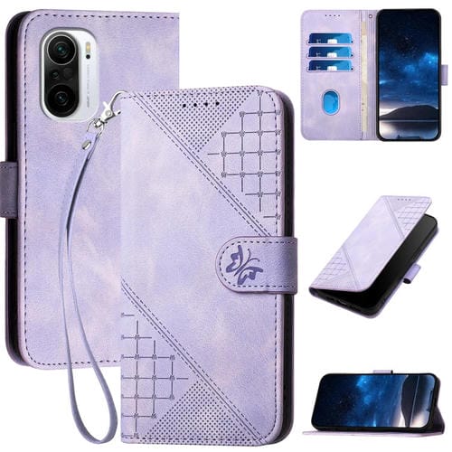 Funda de Cuero con Tapa y Cordón para Xiaomi Poco F3 Yx0080 con Diseño de Mariposa En Relieve (Morado Claro)