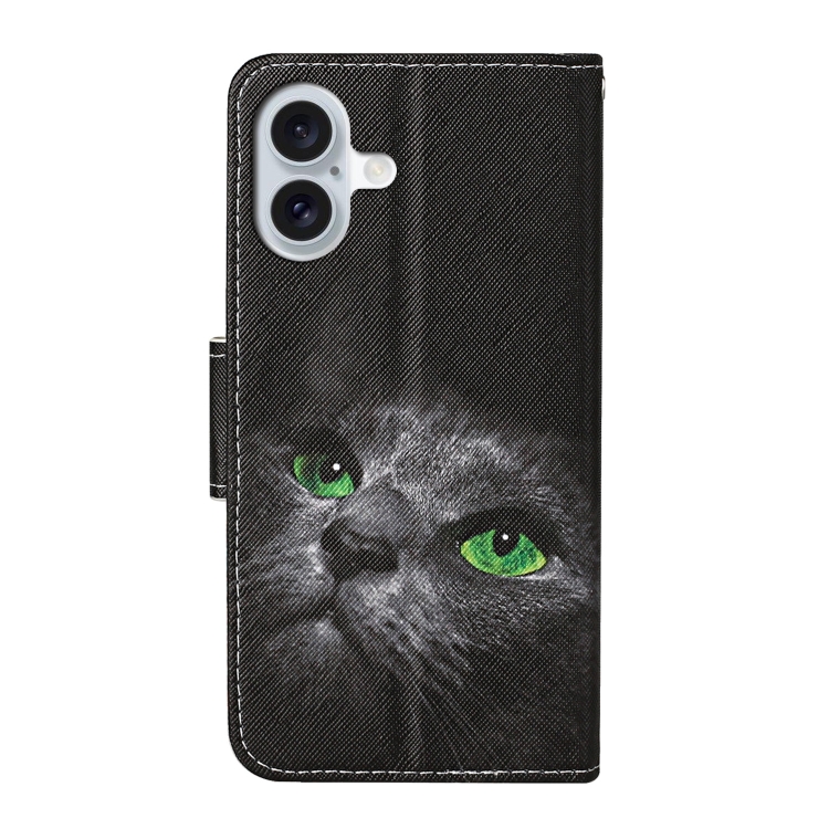 Funda de Cuero con Tapa para iPhone 16 Plus Dibujo en Color 3D (Negro)