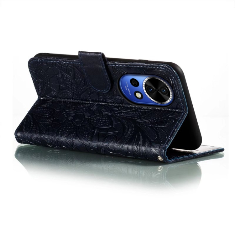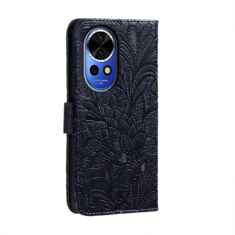 Funda de Cuero con Tapa y Diseño de Flores con Encaje para Huawei Nova 12 (Azul Oscuro)