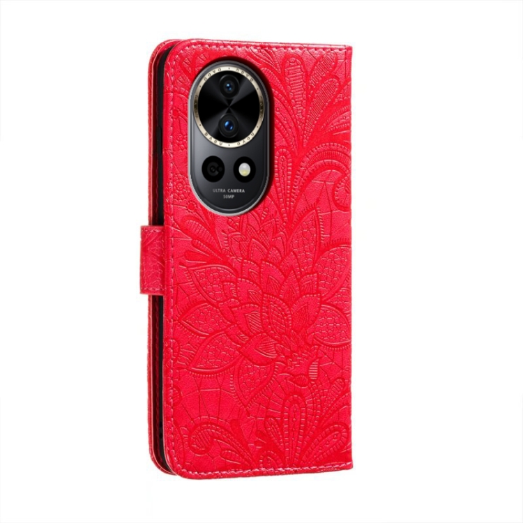- 1x Funda de Cuero con Tapa para Huawei Nova 12 Pro con Diseño de Flores y Encaje (Rojo)