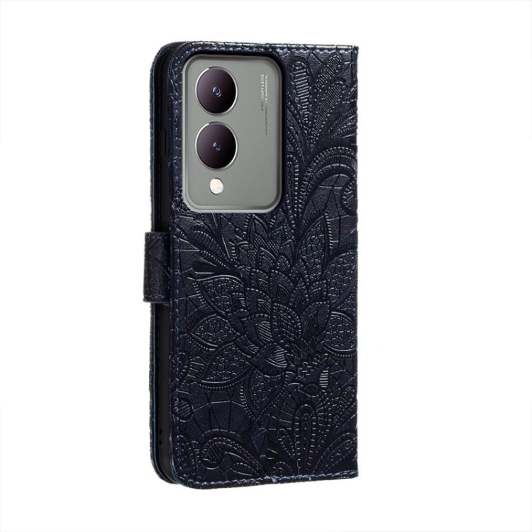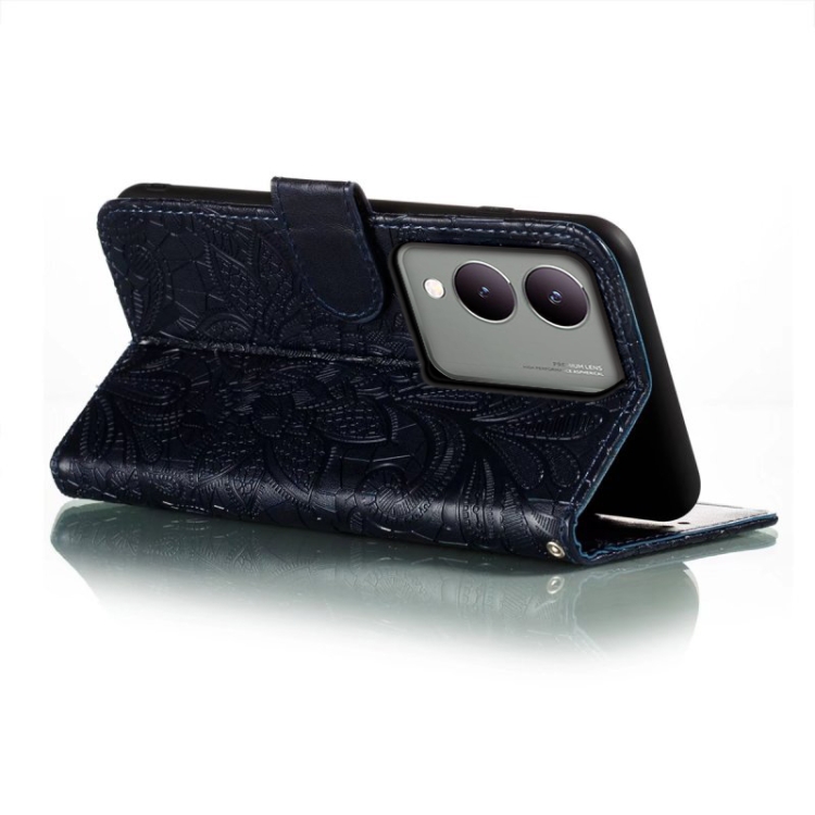 Funda de Cuero con Tapa y Diseño de Flores En Relieve para Vivo Y17S (Azul Oscuro)