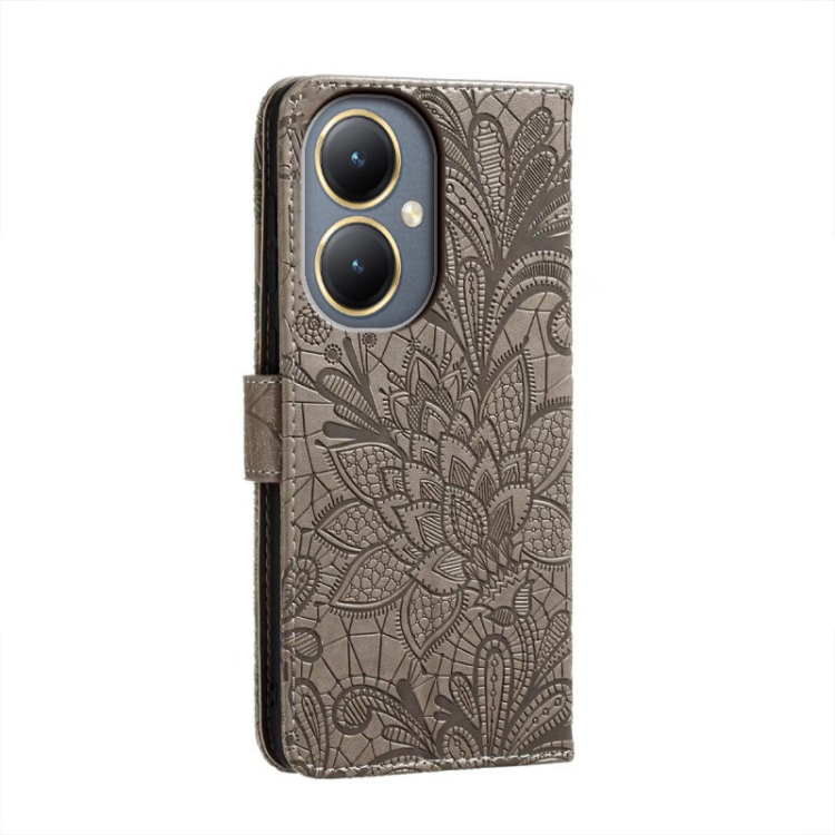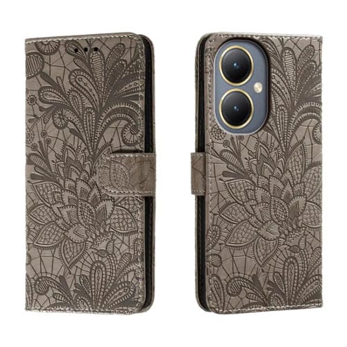 Funda de Cuero con Tapa y Diseño de Flores En Relieve para Vivo Y35M+ (Gris)