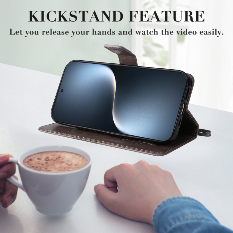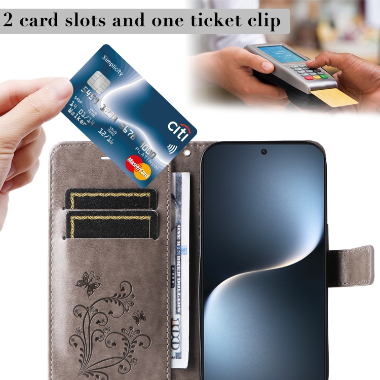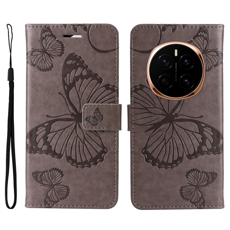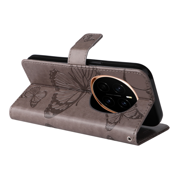 Funda de Cuero con Tapa y Mariposa en Relieve 3D para Honor Magic7 5G (Gris)