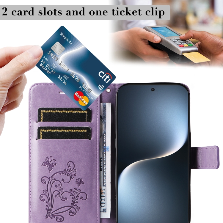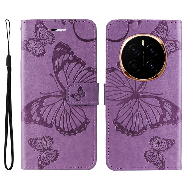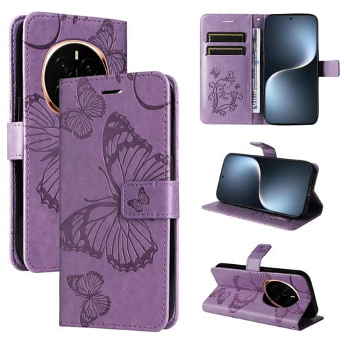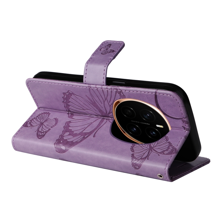 Funda de Cuero con Tapa y Mariposa En Relieve 3D para Honor Magic7 5G (Morado)
