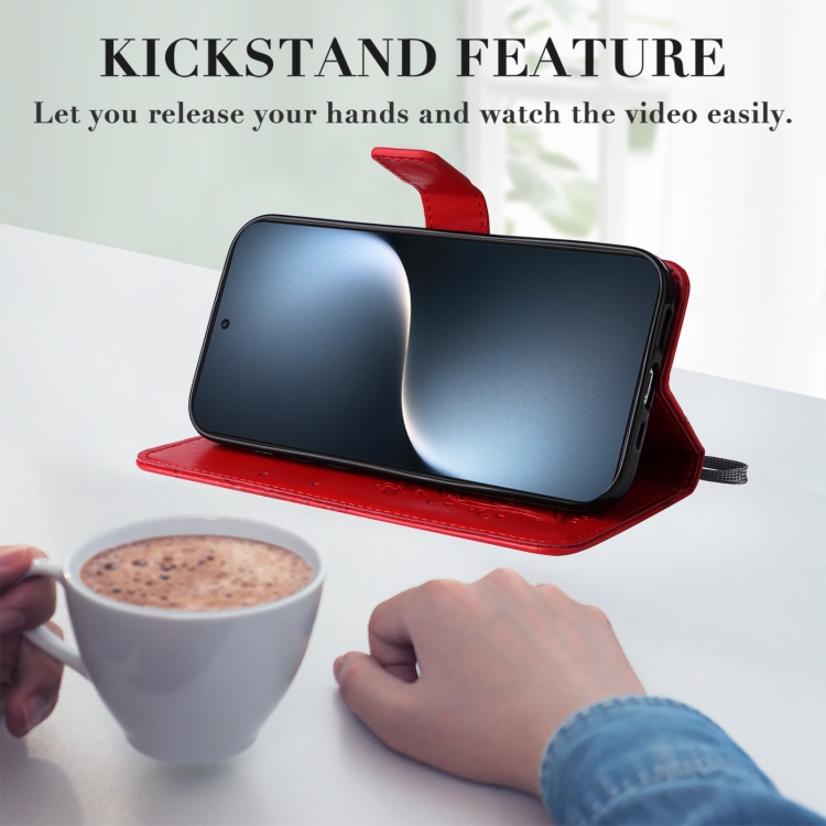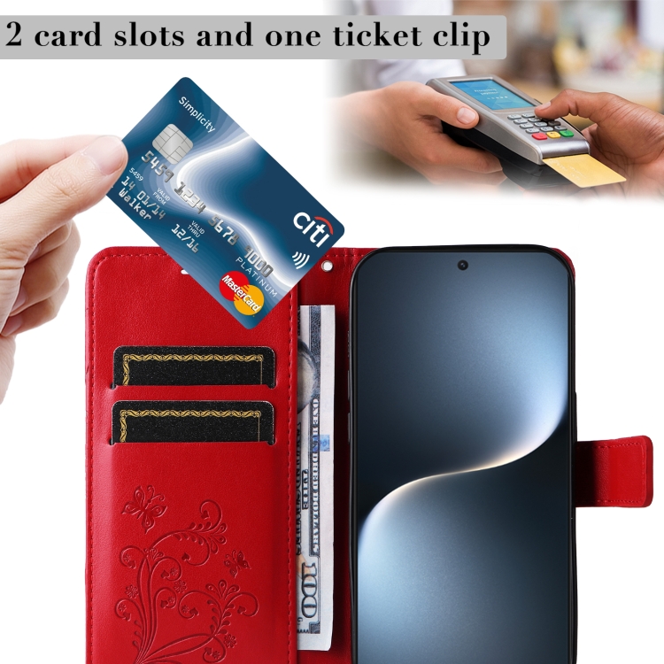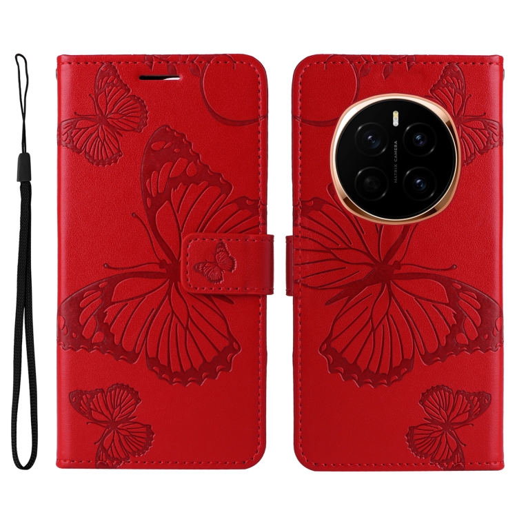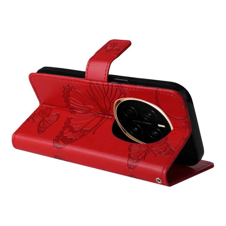 Funda de Cuero con Tapa y Mariposa en Relieve 3D para Honor Magic7 5G (Rojo)