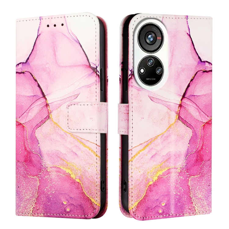 Funda de Cuero con Tapa para ZTE Blade V40S Pt003 con Diseño Mármol (Rosa, Morado y Dorado)