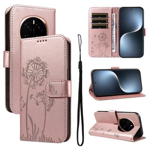 Funda de Cuero con Tapa y Diente de León en Relieve para Honor Magic7 5G (Oro Rosa)