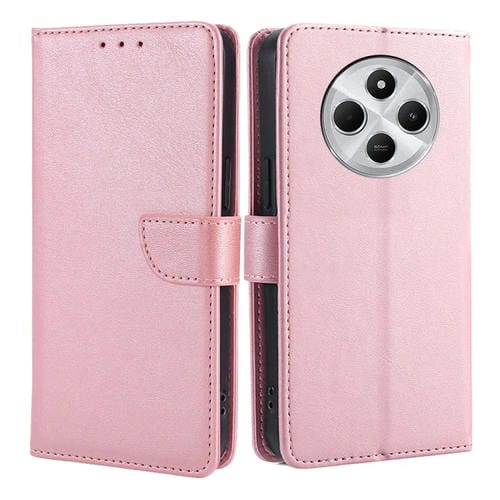 Funda de Cuero con Tapa y Hebilla con Textura de Becerro para Redmi 14C 4G (Oro Rosa)