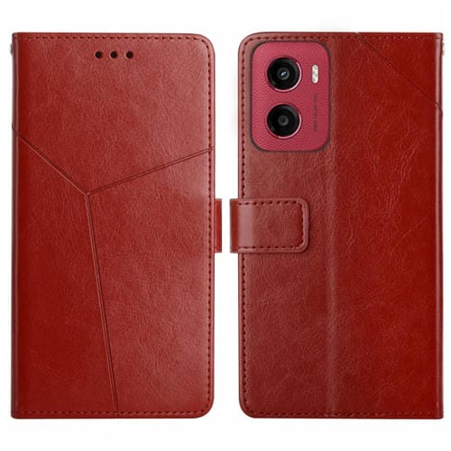 Funda de Cuero con Tapa y Patrón en Y para Motorola Moto G05 Ht01 (Marrón)