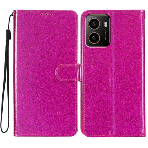 Funda de Cuero con Tapa y Purpurina para Teléfono Hmd Pulse+ (Rosa y Rojo)