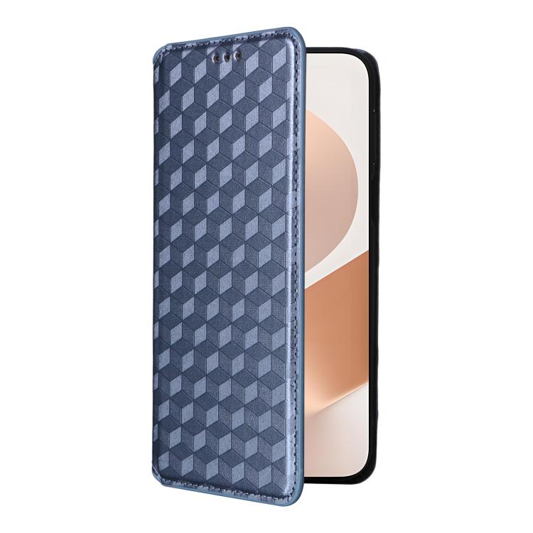 Funda de cuero con tapa y textura de cuadrícula cúbica para Huawei Pura 80 Pro 5G / 80 Pro+ 5G (azul)