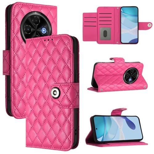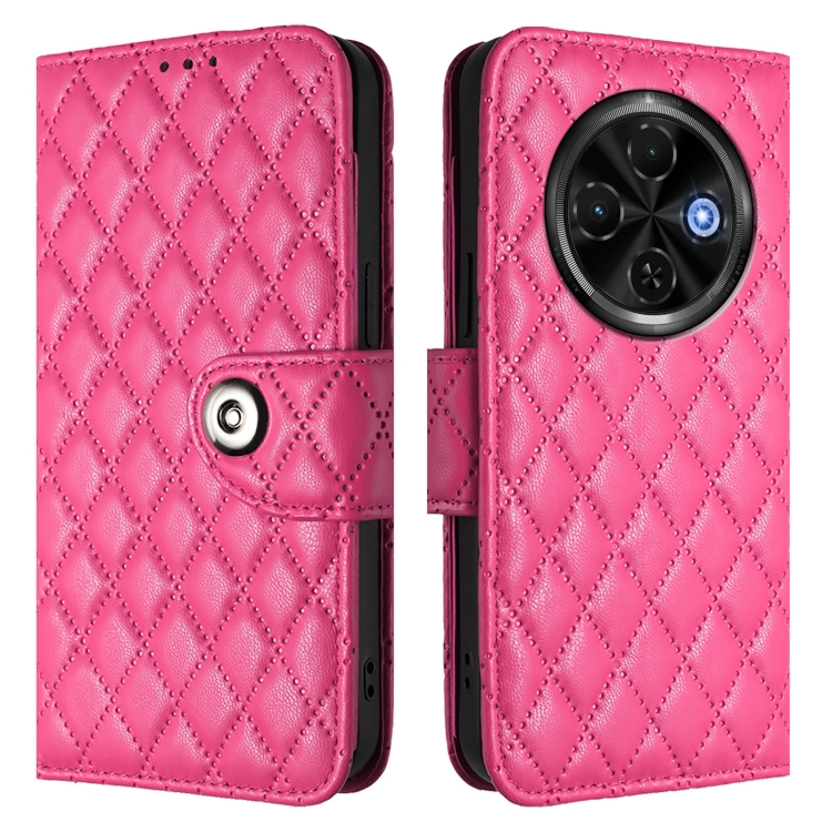 Funda de Cuero con Tapa y Textura Rómbica para Tecno Spark 30C 5G / Pop 9 5G con Cordón (Rosa)