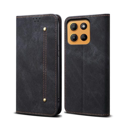 Funda de Cuero con Tapa y Textura Vaquera para Motorola Moto G15 (Negra)